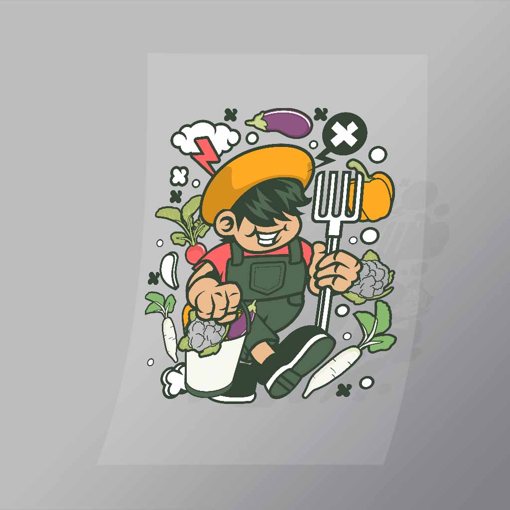 A great Farmer Kid DTF (Direct to Film) Transfer available in multiple sizes. (Beased on width at artwork aspect ratio)