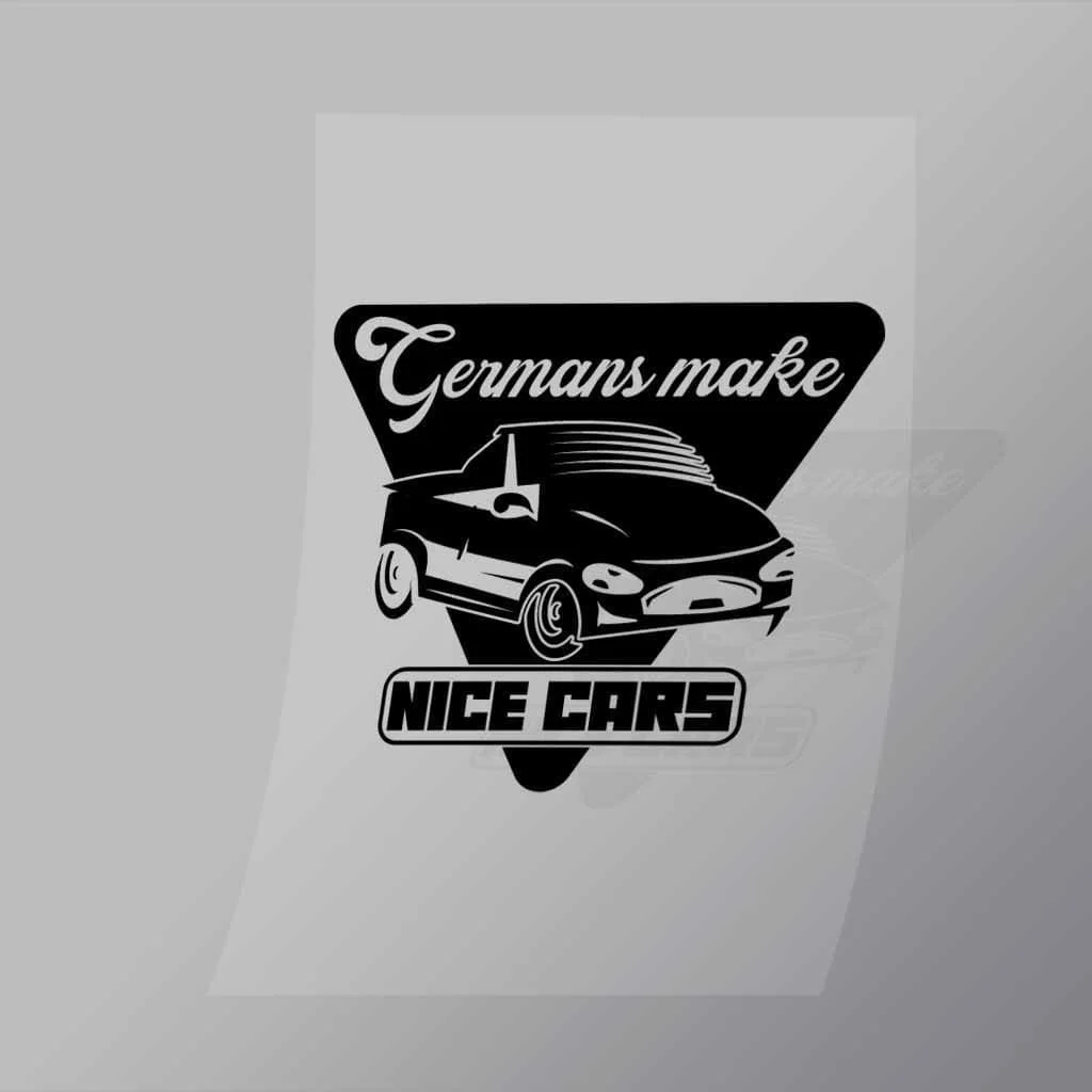 A great Germans Make Nice Cars DTF (Direct to Film) Transfer available in multiple sizes. (Beased on width at artwork aspect ratio)