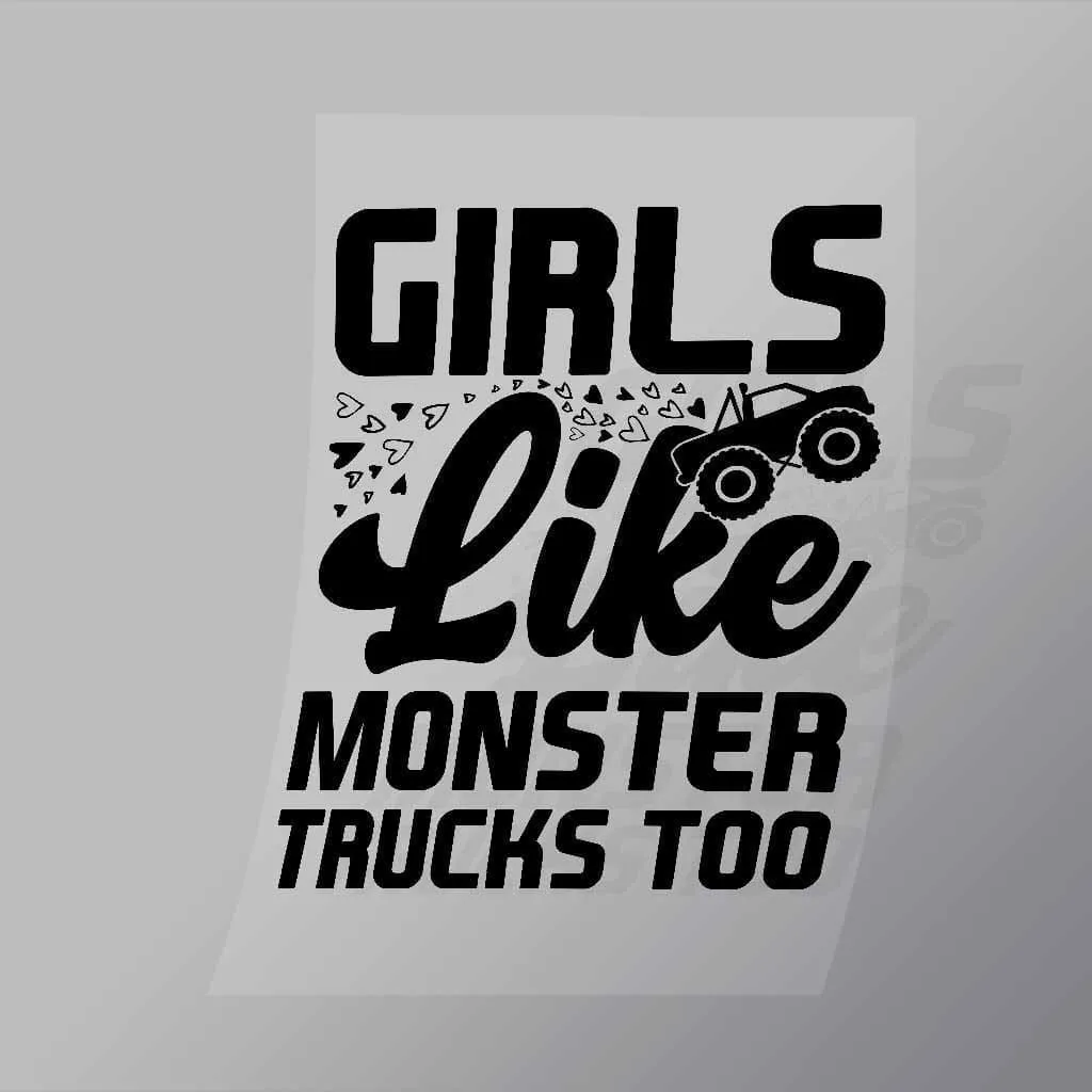Girls Like Monster Trucks Too DTF Apparel Transfer
