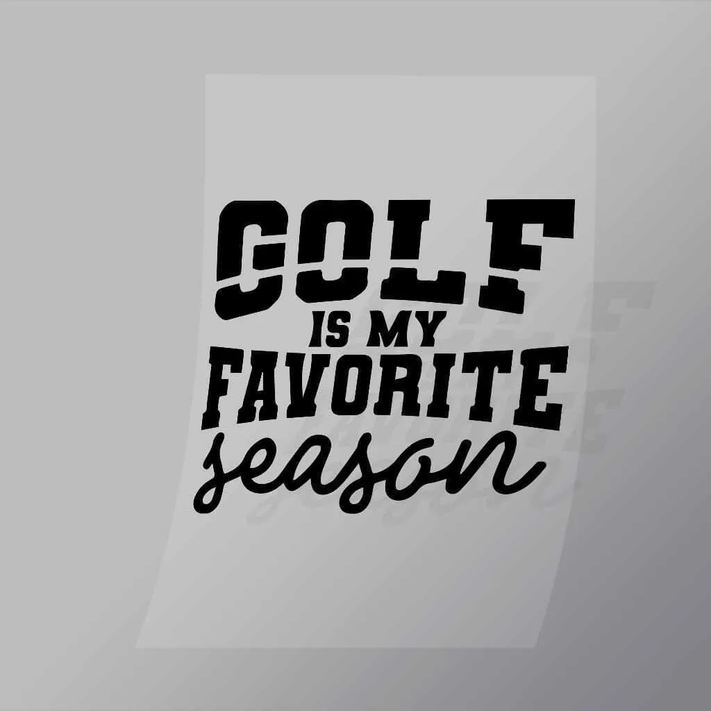 A great Golf Is My Favourite Season DTF (Direct to Film) Transfer available in multiple sizes. (Beased on width at artwork aspect ratio)