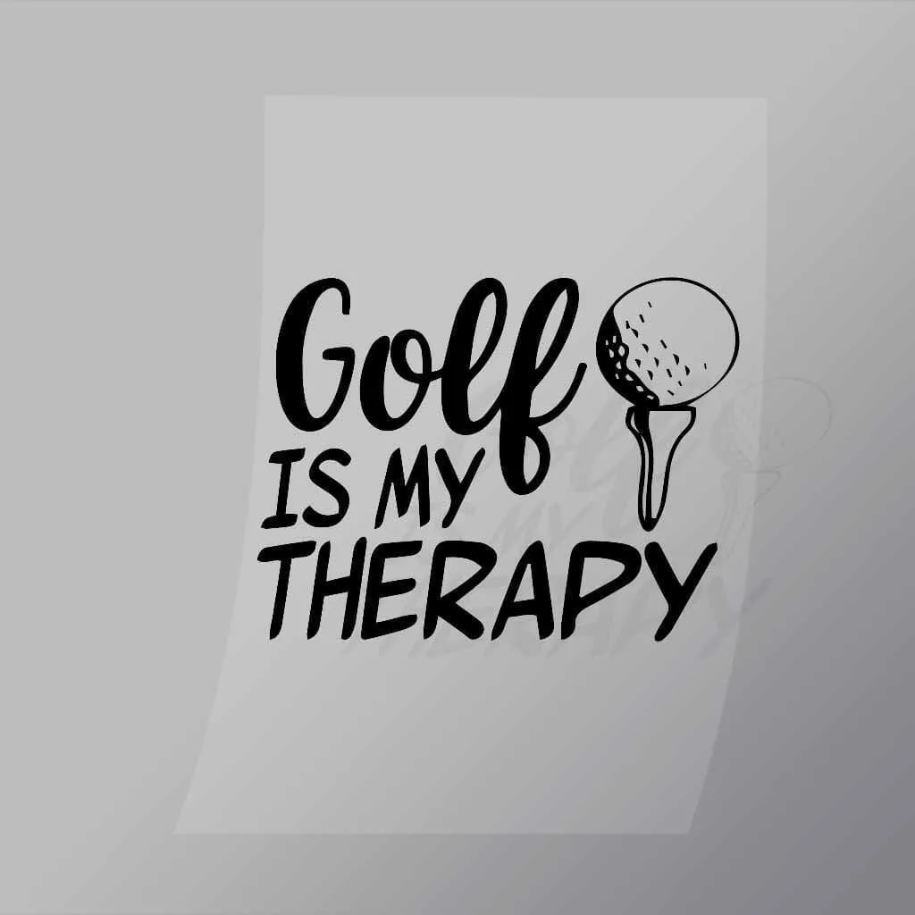 A great Golf Is My Therapy DTF (Direct to Film) Transfer available in multiple sizes. (Beased on width at artwork aspect ratio)