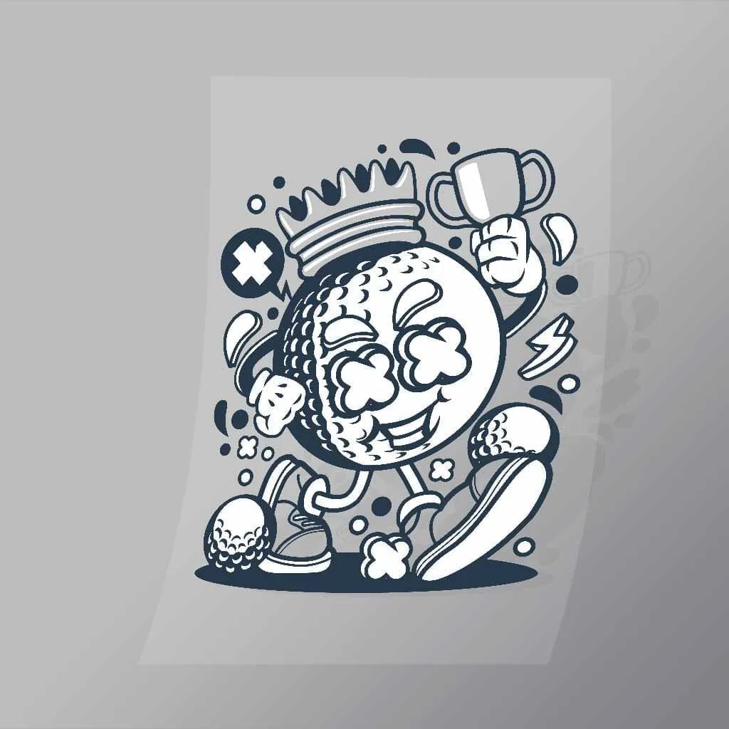 A great Golf King DTF (Direct to Film) Transfer available in multiple sizes. (Beased on width at artwork aspect ratio)
