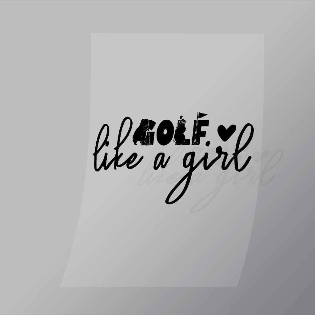 A great Golf Like A Girl DTF (Direct to Film) Transfer available in multiple sizes. (Beased on width at artwork aspect ratio)