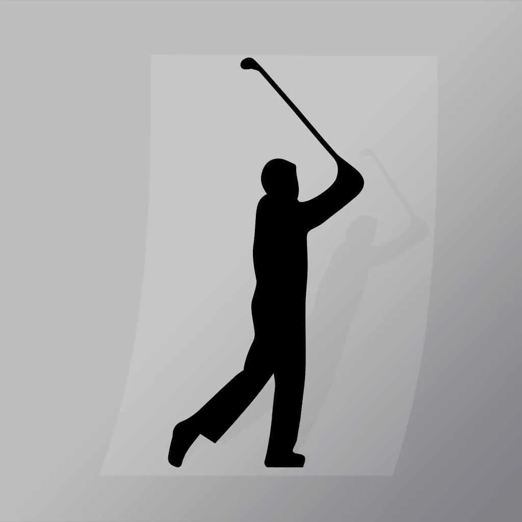 A great Golf Swing Silhouette DTF (Direct to Film) Transfer available in multiple sizes. (Beased on width at artwork aspect ratio)