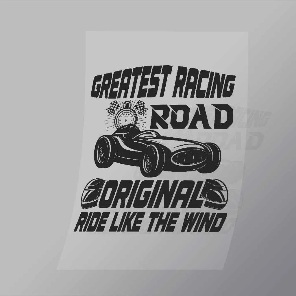 A great Greatest Racing Road Black DTF (Direct to Film) Transfer available in multiple sizes. (Beased on width at artwork aspect ratio)