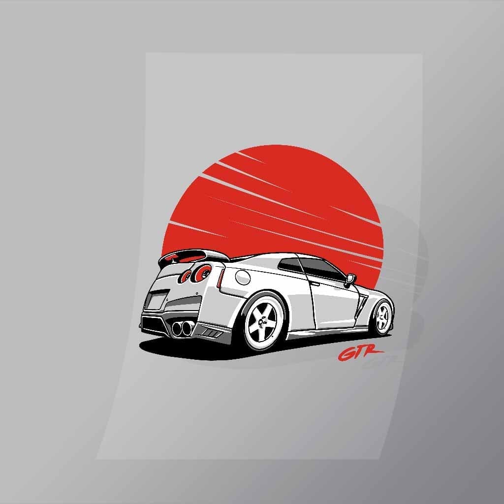 A great GTR Red Moon DTF (Direct to Film) Transfer available in multiple sizes. (Beased on width at artwork aspect ratio)