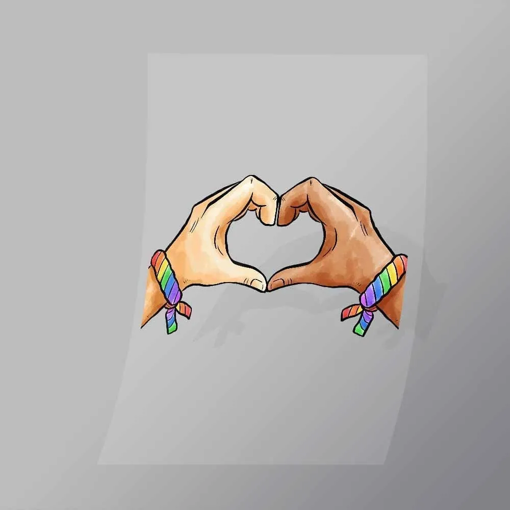 A great Hands Heart DTF (Direct to Film) Transfer available in multiple sizes. (Beased on width at artwork aspect ratio)