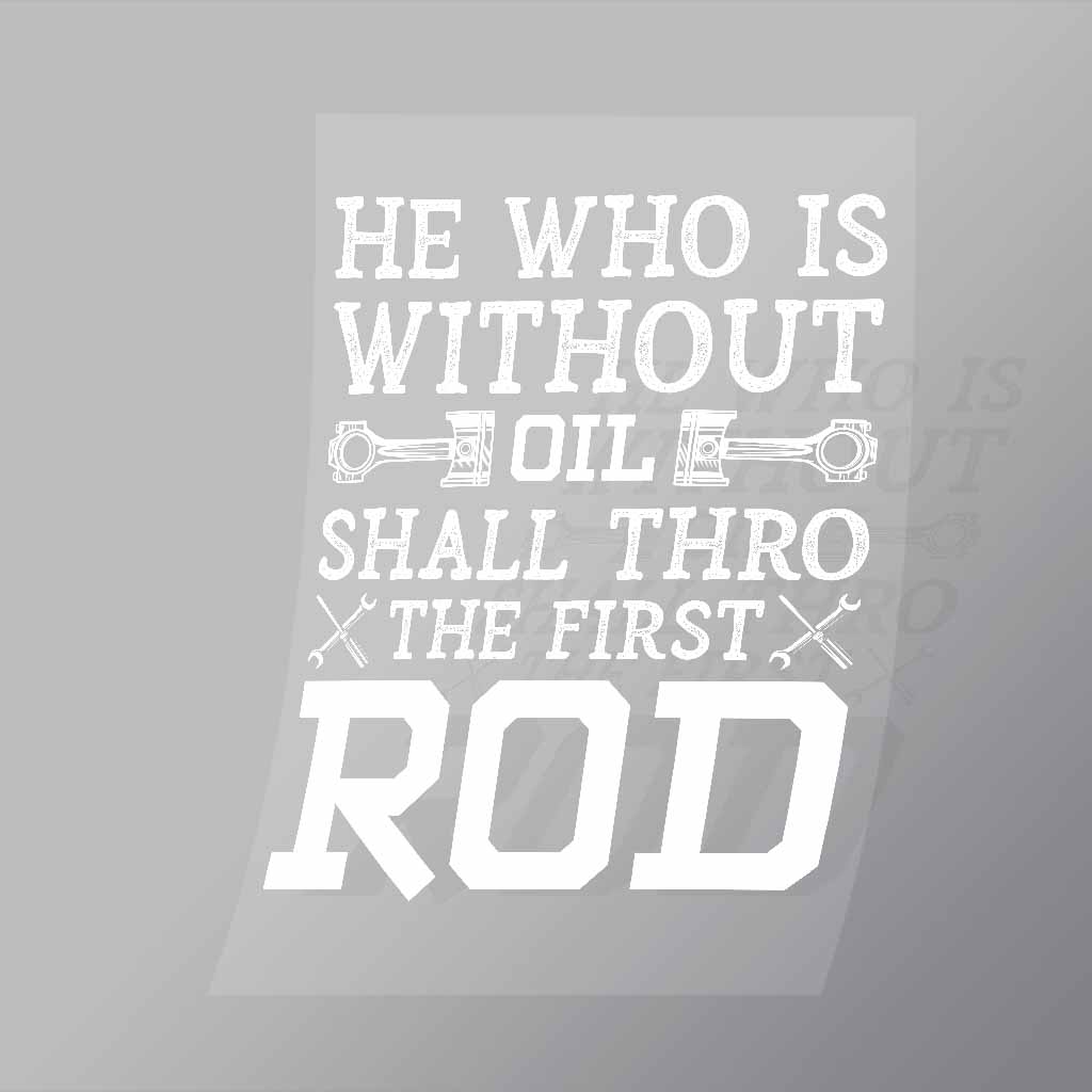 He Who Is Without Oil Shall Thro The First Rod DTF Apparel Transfer