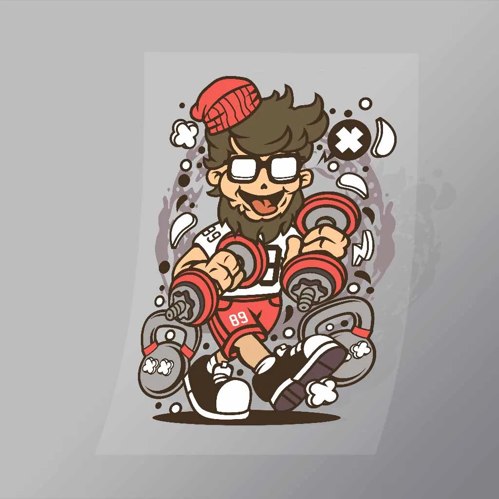 A great Hipster Gym DTF (Direct to Film) Transfer available in multiple sizes. (Beased on width at artwork aspect ratio)
