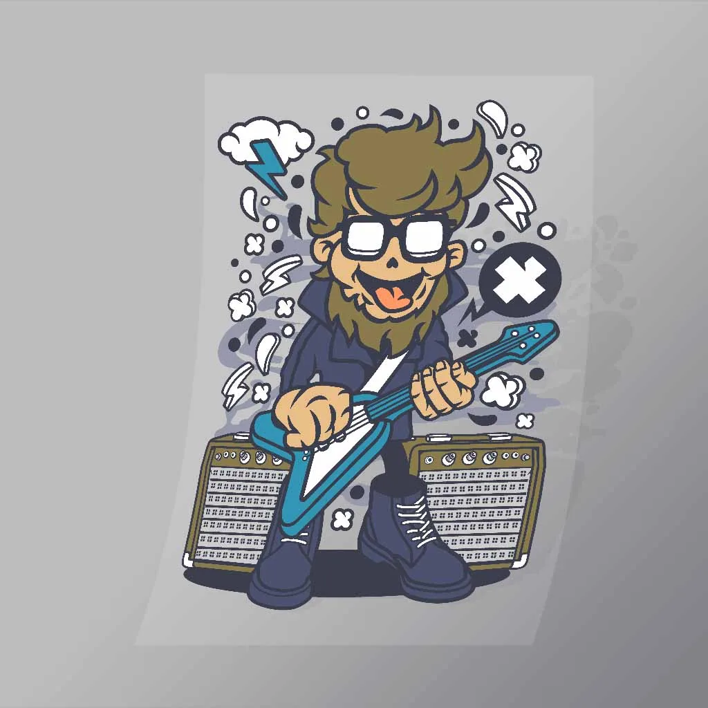 A great Hipster Rock Star DTF (Direct to Film) Transfer available in multiple sizes. (Beased on width at artwork aspect ratio)
