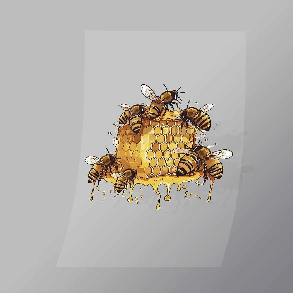A great Honey Bee Home DTF (Direct to Film) Transfer available in multiple sizes. (Beased on width at artwork aspect ratio)