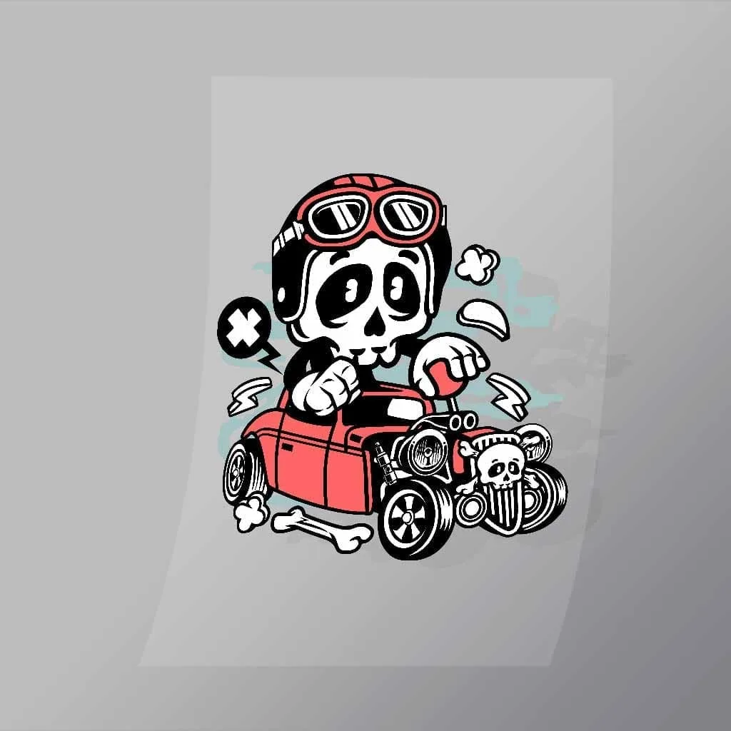 A great Hot Rod Skull DTF (Direct to Film) Transfer available in multiple sizes. (Beased on width at artwork aspect ratio)