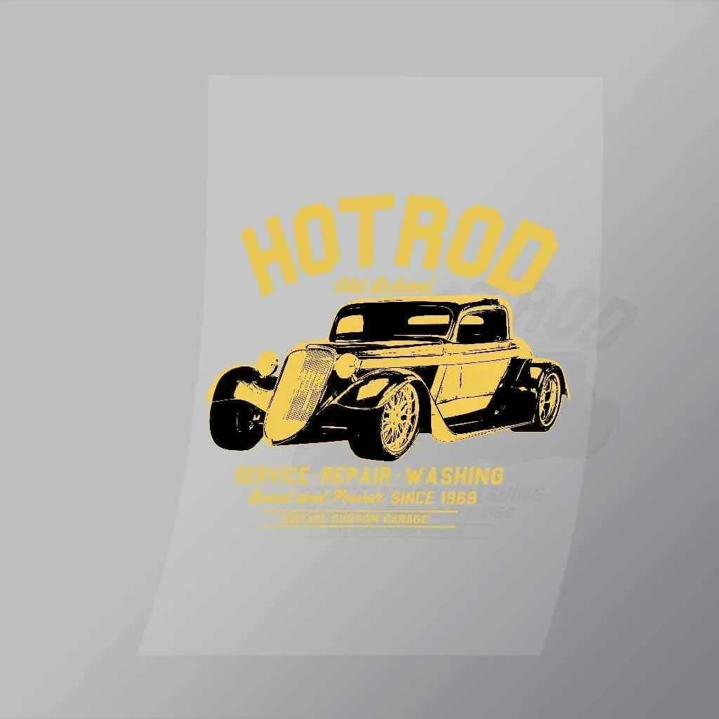 A great Hotrod Old School DTF (Direct to Film) Transfer available in multiple sizes. (Beased on width at artwork aspect ratio)