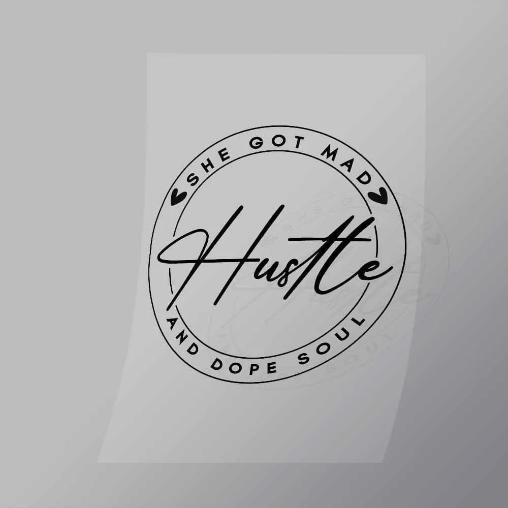 A great Hustle DTF (Direct to Film) Transfer available in multiple sizes. (Beased on width at artwork aspect ratio)