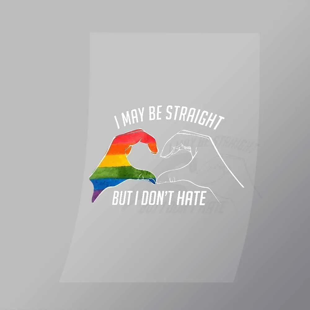 A great I May Be Stright No Hate DTF (Direct to Film) Transfer available in multiple sizes. (Beased on width at artwork aspect ratio)