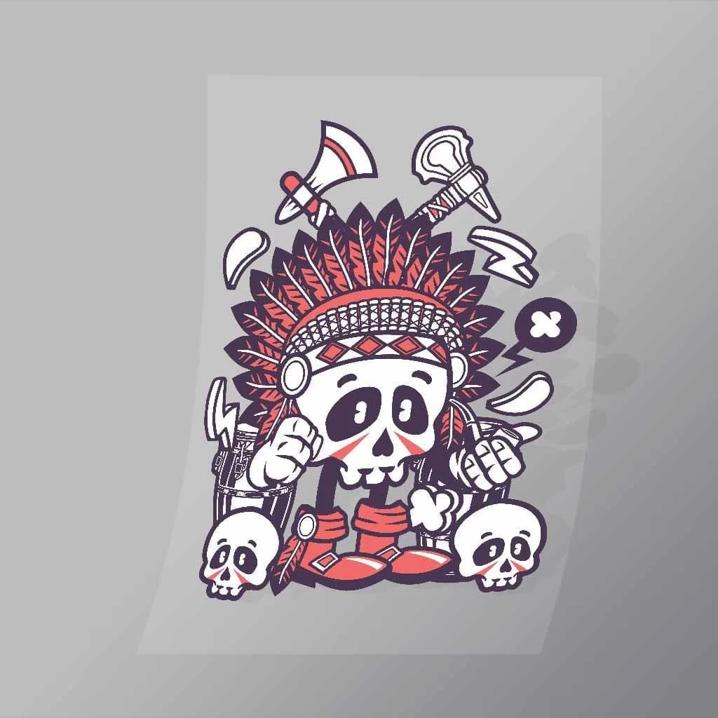 A great Indian Chief Skull DTF (Direct to Film) Transfer available in multiple sizes. (Beased on width at artwork aspect ratio)