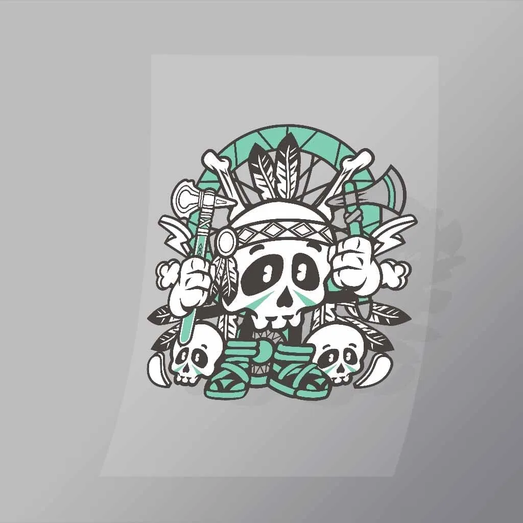 A great Indian Skull DTF (Direct to Film) Transfer available in multiple sizes. (Beased on width at artwork aspect ratio)