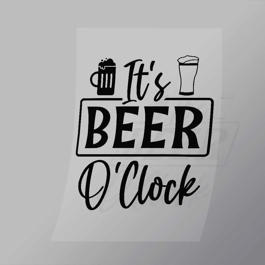 A great Its Beer Oclock Black DTF (Direct to Film) Transfer available in multiple sizes. (Beased on width at artwork aspect ratio)