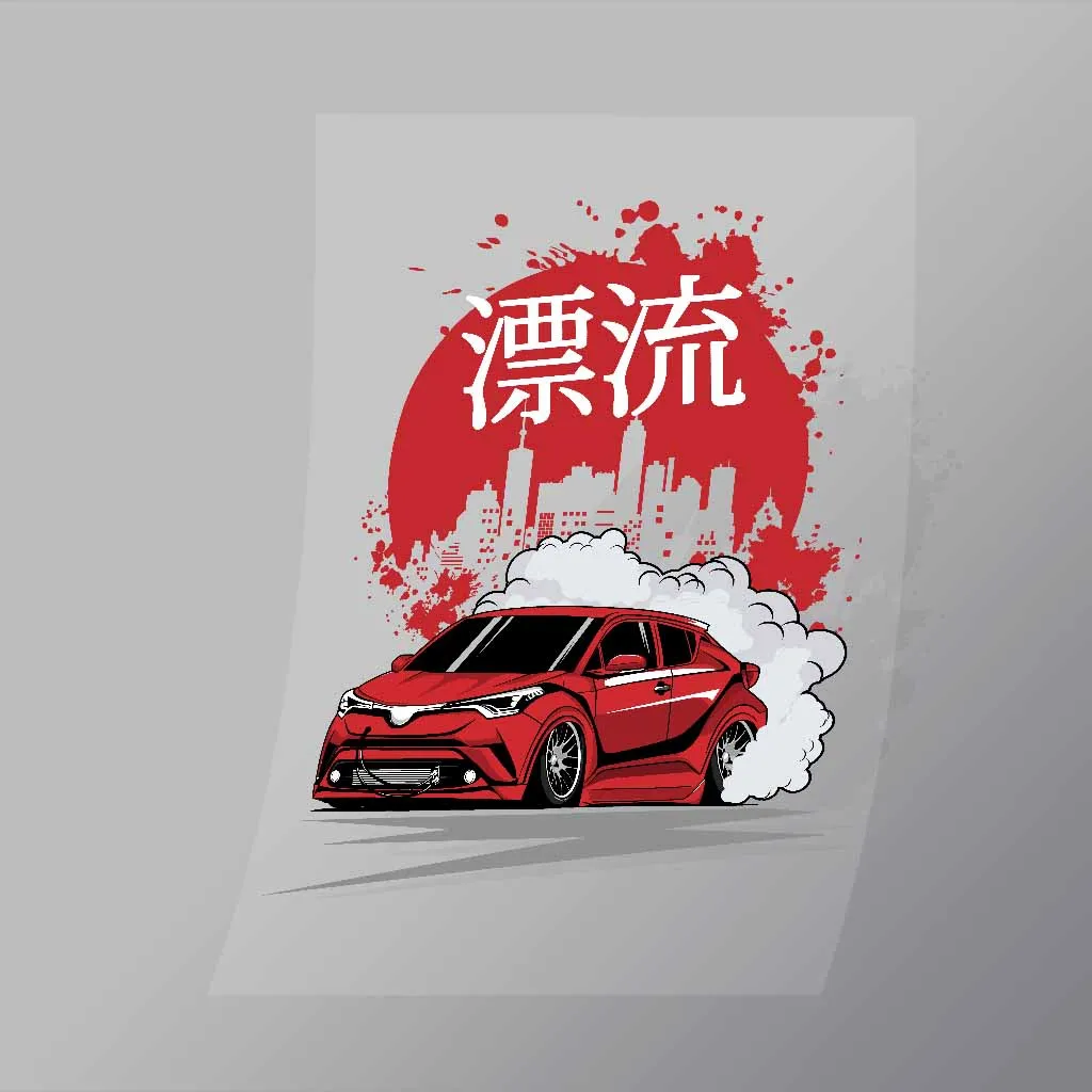 A great Japanese Drift DTF (Direct to Film) Transfer available in multiple sizes. (Beased on width at artwork aspect ratio)