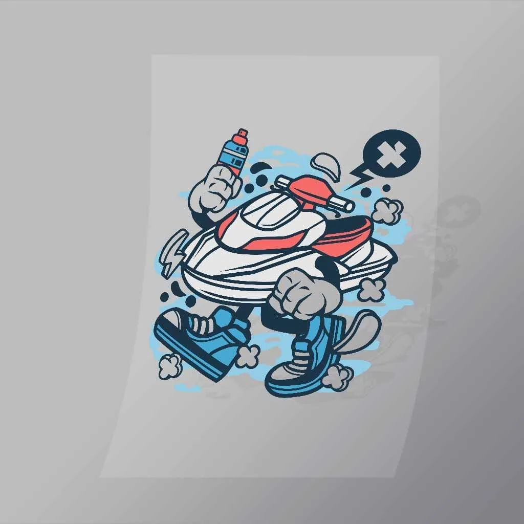 A great Jetski DTF (Direct to Film) Transfer available in multiple sizes. (Beased on width at artwork aspect ratio)