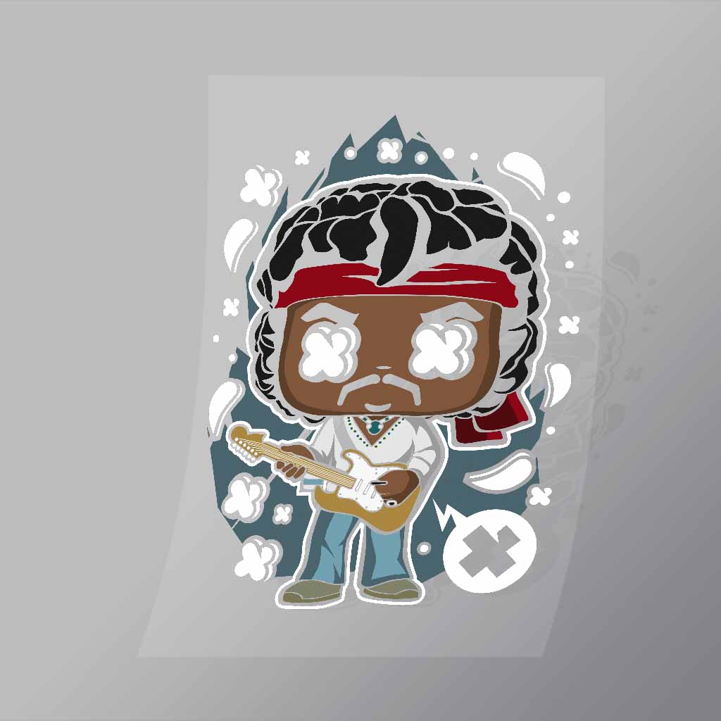 A great Jimmy Hendrik DTF (Direct to Film) Transfer available in multiple sizes. (Beased on width at artwork aspect ratio)