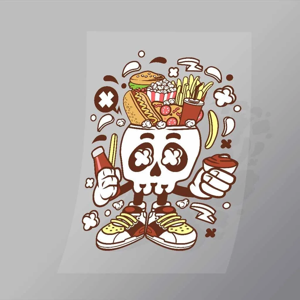 Be the first to review “Junk Food Skull DTF Apparel Transfer”