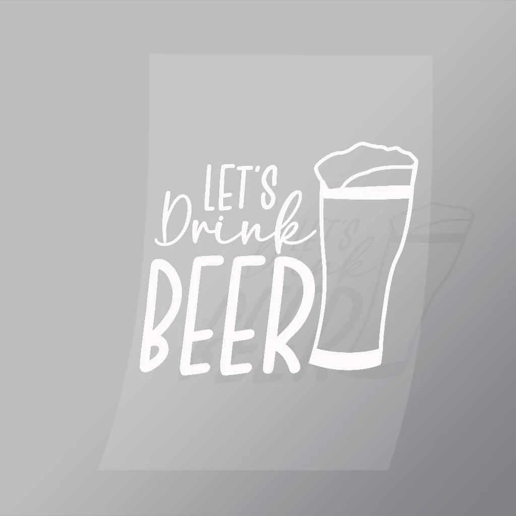 A great Lets Drink Beer White DTF (Direct to Film) Transfer available in multiple sizes. (Beased on width at artwork aspect ratio)