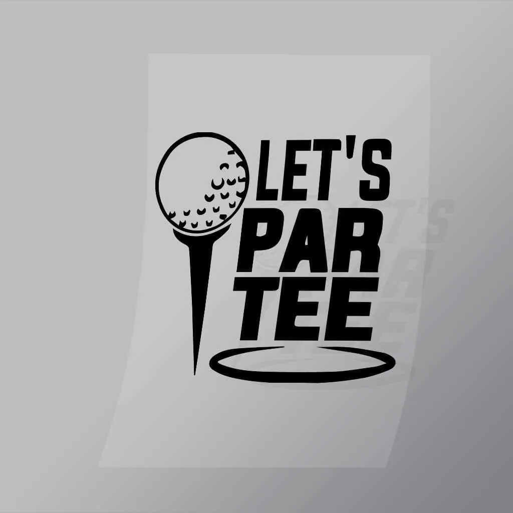 A great Lets Par Tee DTF (Direct to Film) Transfer available in multiple sizes. (Beased on width at artwork aspect ratio)