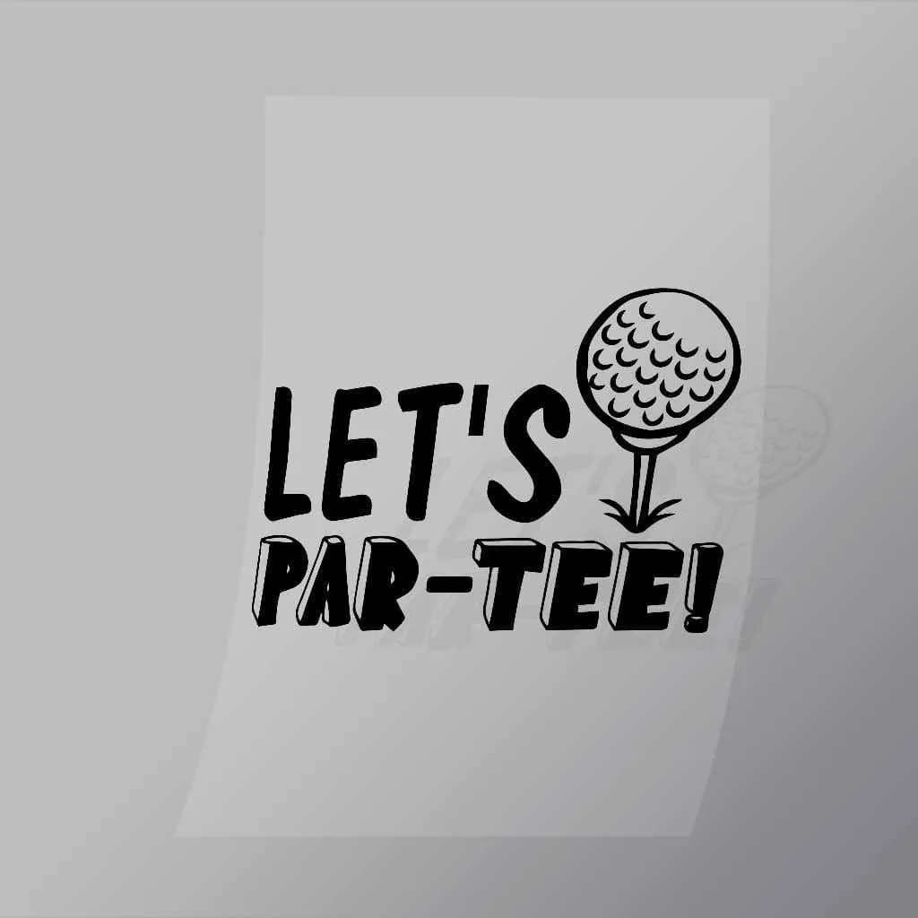 A great Lets Par Tee DTF (Direct to Film) Transfer available in multiple sizes. (Beased on width at artwork aspect ratio)