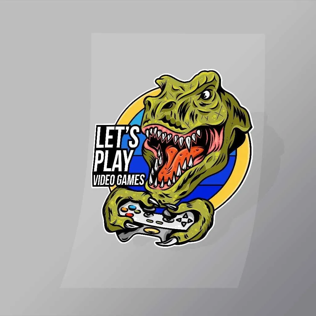 A great Lets Play Video Games Rex DTF (Direct to Film) Transfer available in multiple sizes. (Beased on width at artwork aspect ratio)