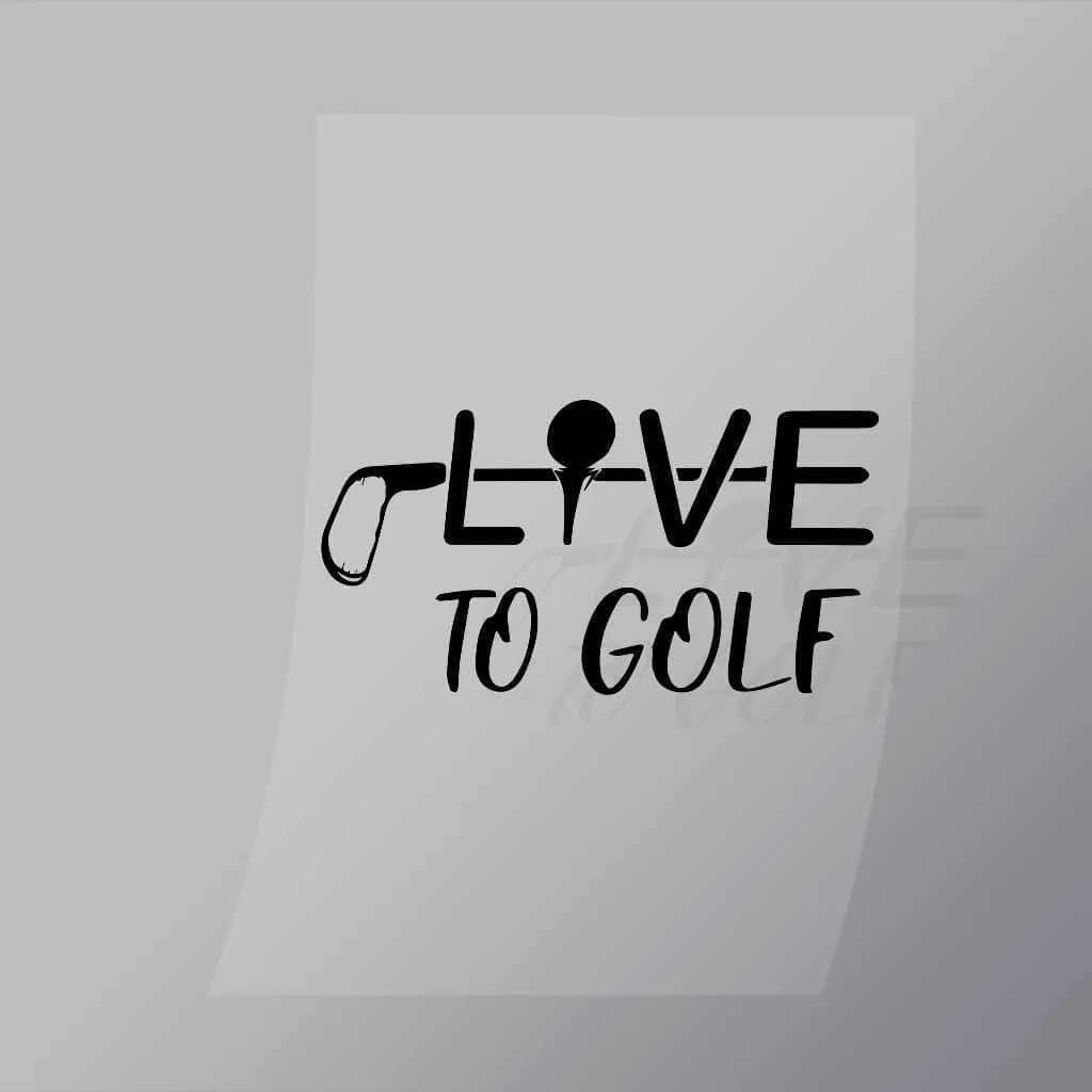 A great Live To Golf DTF (Direct to Film) Transfer available in multiple sizes. (Beased on width at artwork aspect ratio)