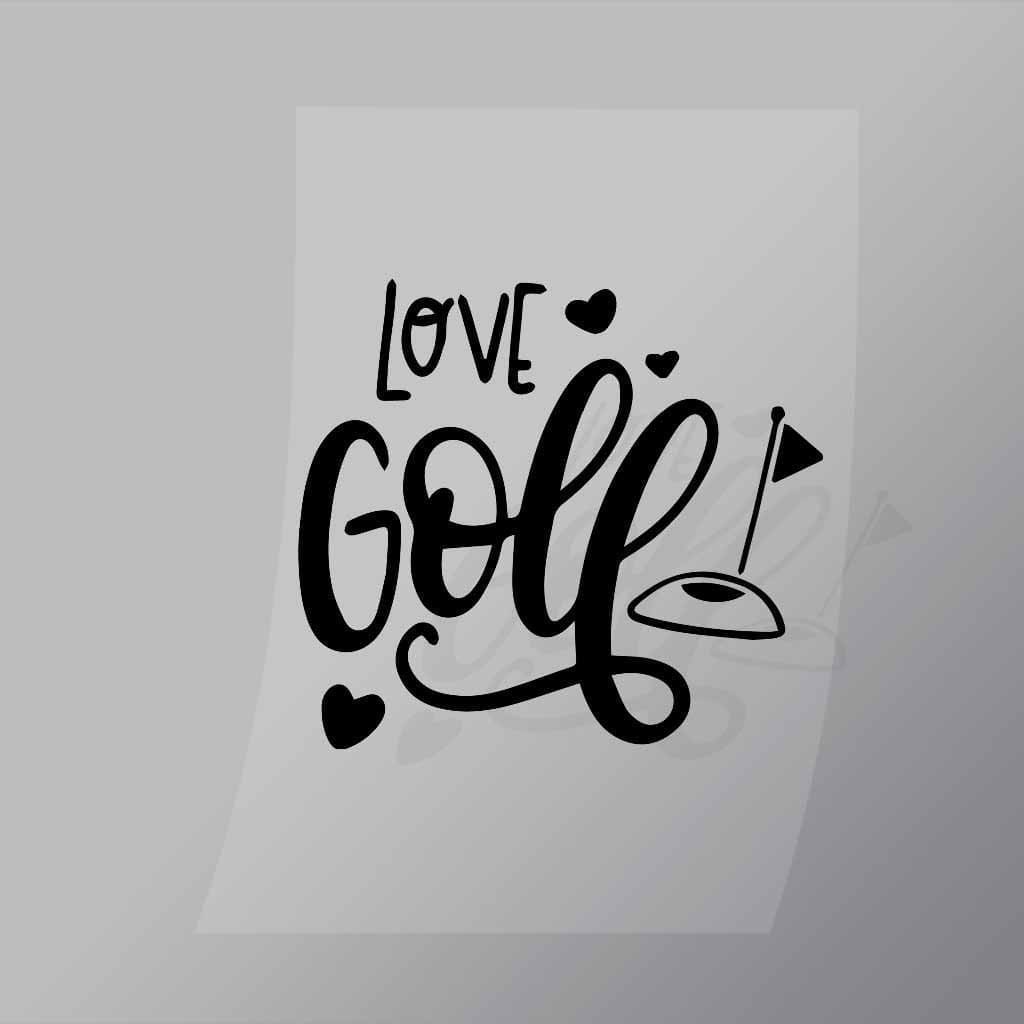 A great Love Golf DTF (Direct to Film) Transfer available in multiple sizes. (Beased on width at artwork aspect ratio)