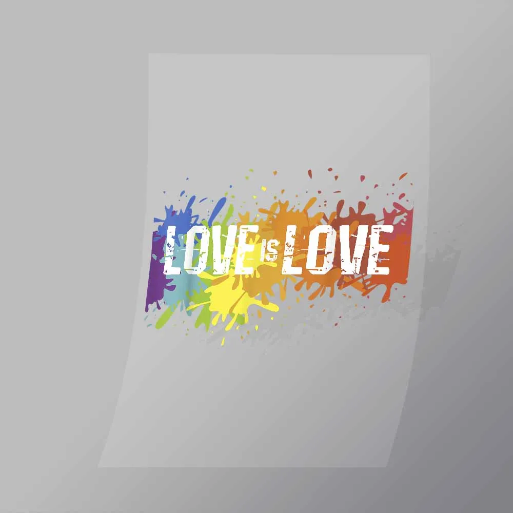 A great Love Is Love DTF (Direct to Film) Transfer available in multiple sizes. (Beased on width at artwork aspect ratio)