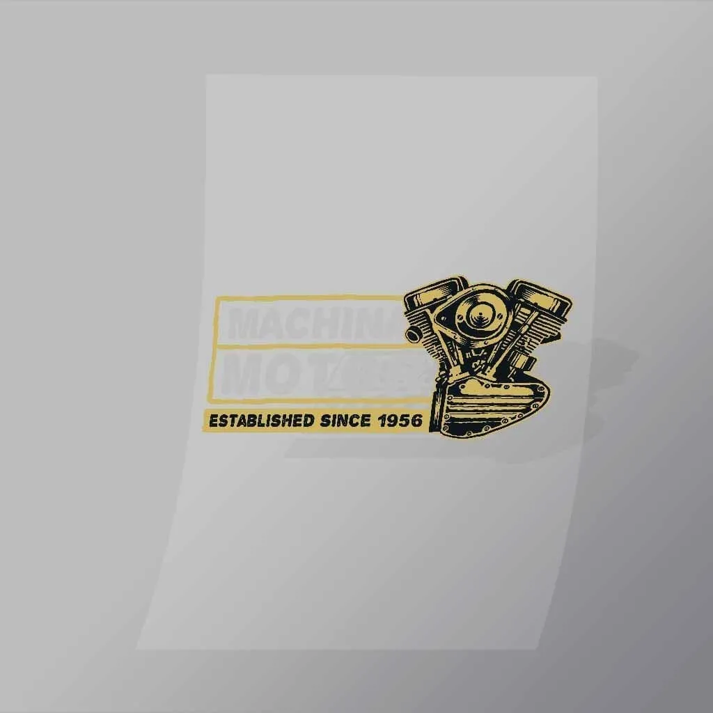 A great Machina Motor DTF (Direct to Film) Transfer available in multiple sizes. (Beased on width at artwork aspect ratio)