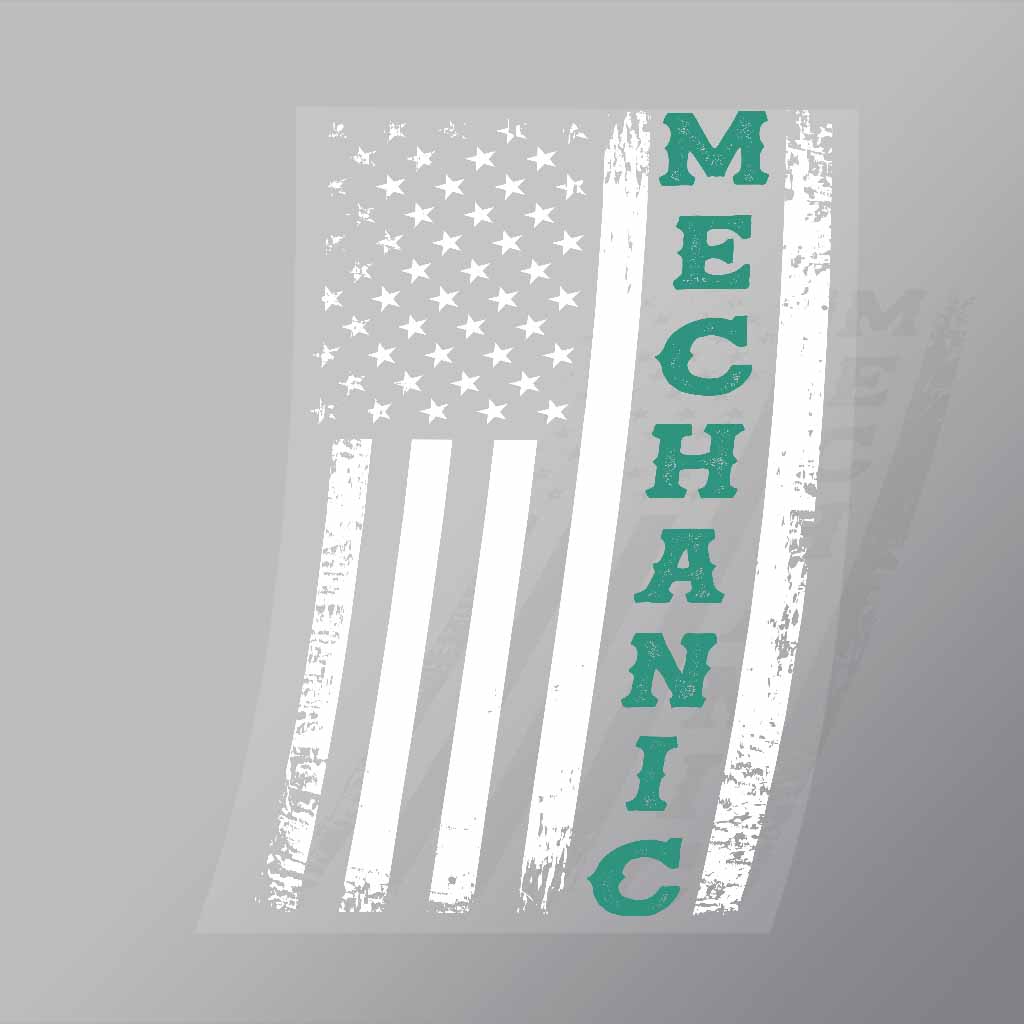 A great Mechanic Vertical Flag DTF (Direct to Film) Transfer available in multiple sizes. (Beased on width at artwork aspect ratio)