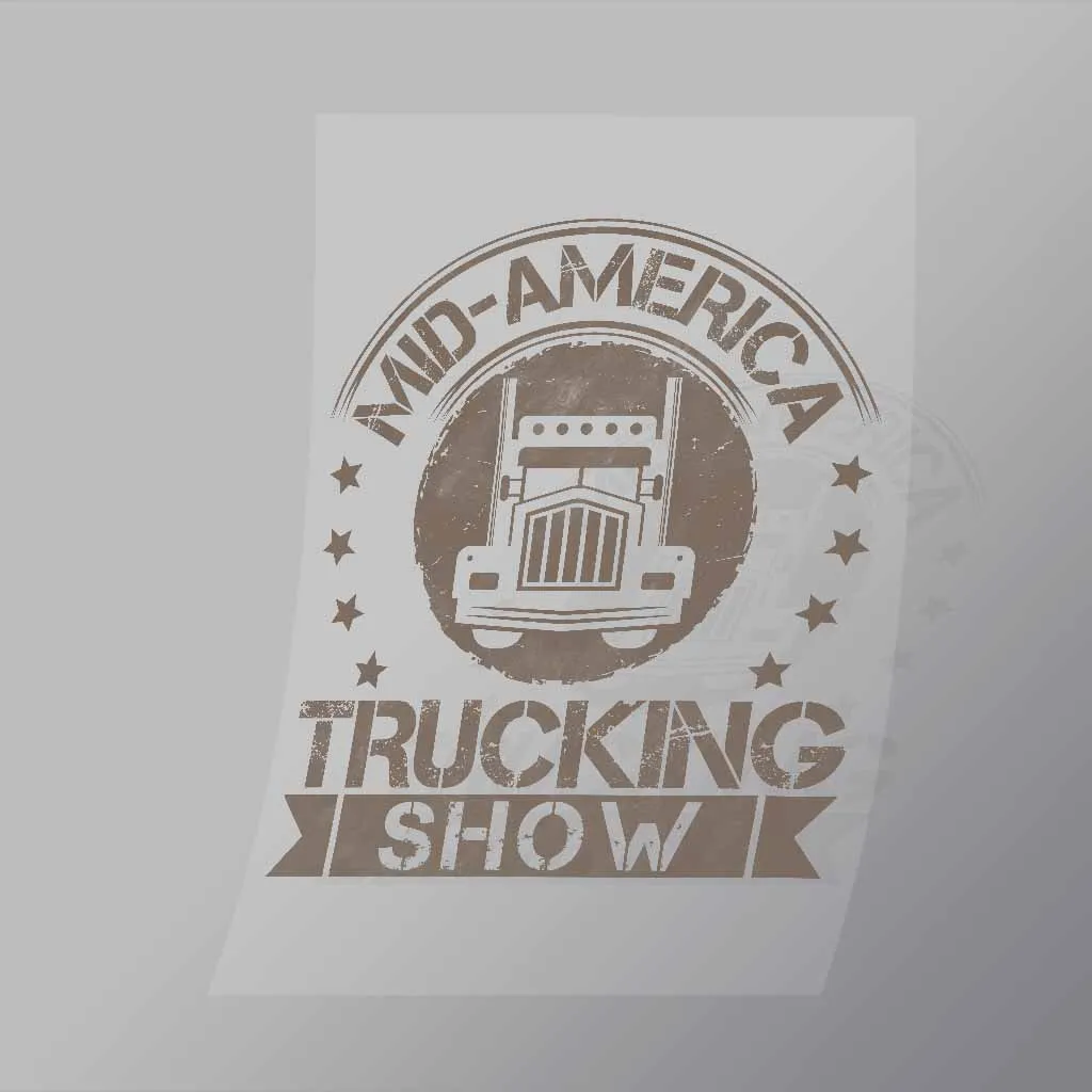 A great Mid America Trucking Show DTF (Direct to Film) Transfer available in multiple sizes. (Beased on width at artwork aspect ratio)