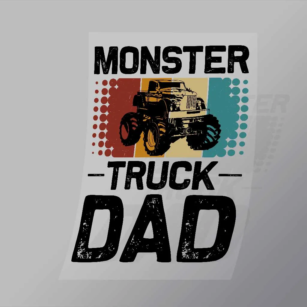 A great Monster Truck Dad DTF (Direct to Film) Transfer available in multiple sizes. (Beased on width at artwork aspect ratio)