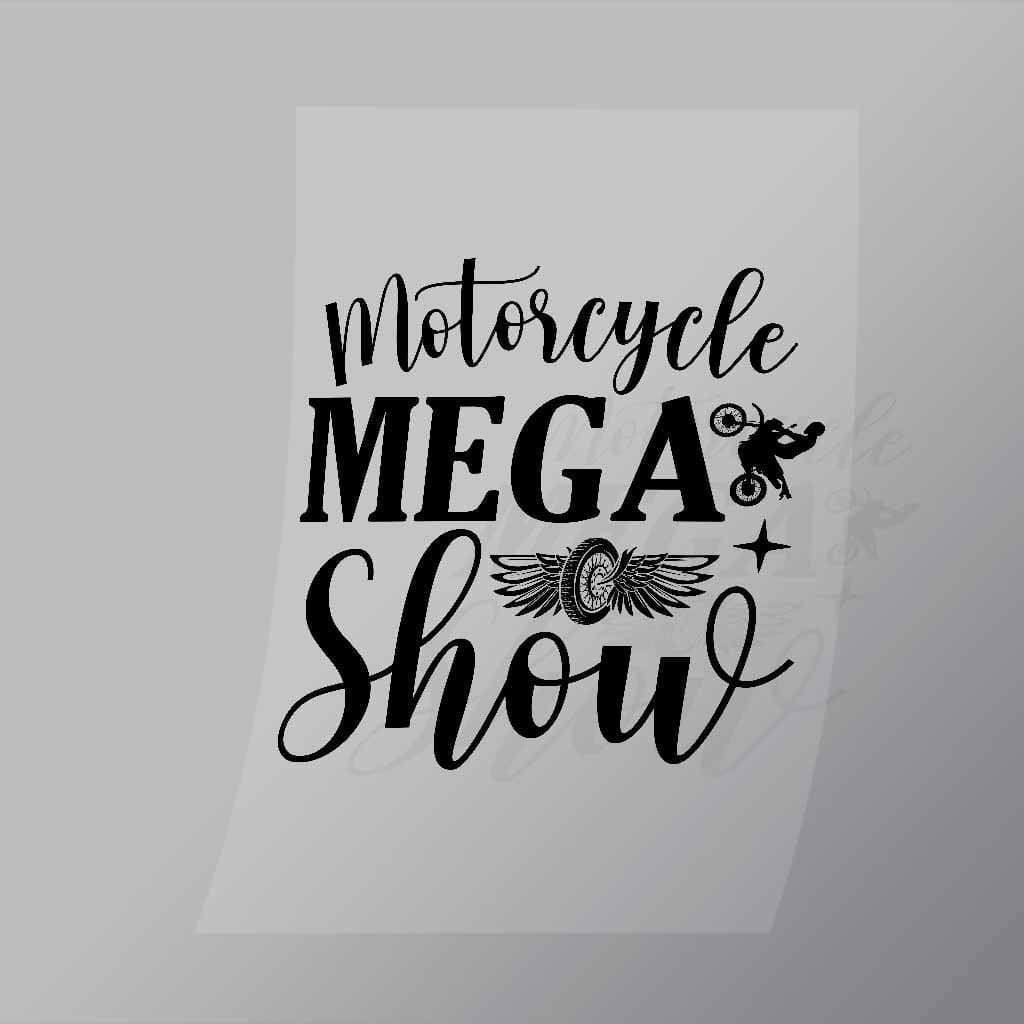 A great Motorcycle Mega Show DTF (Direct to Film) Transfer available in multiple sizes. (Beased on width at artwork aspect ratio)