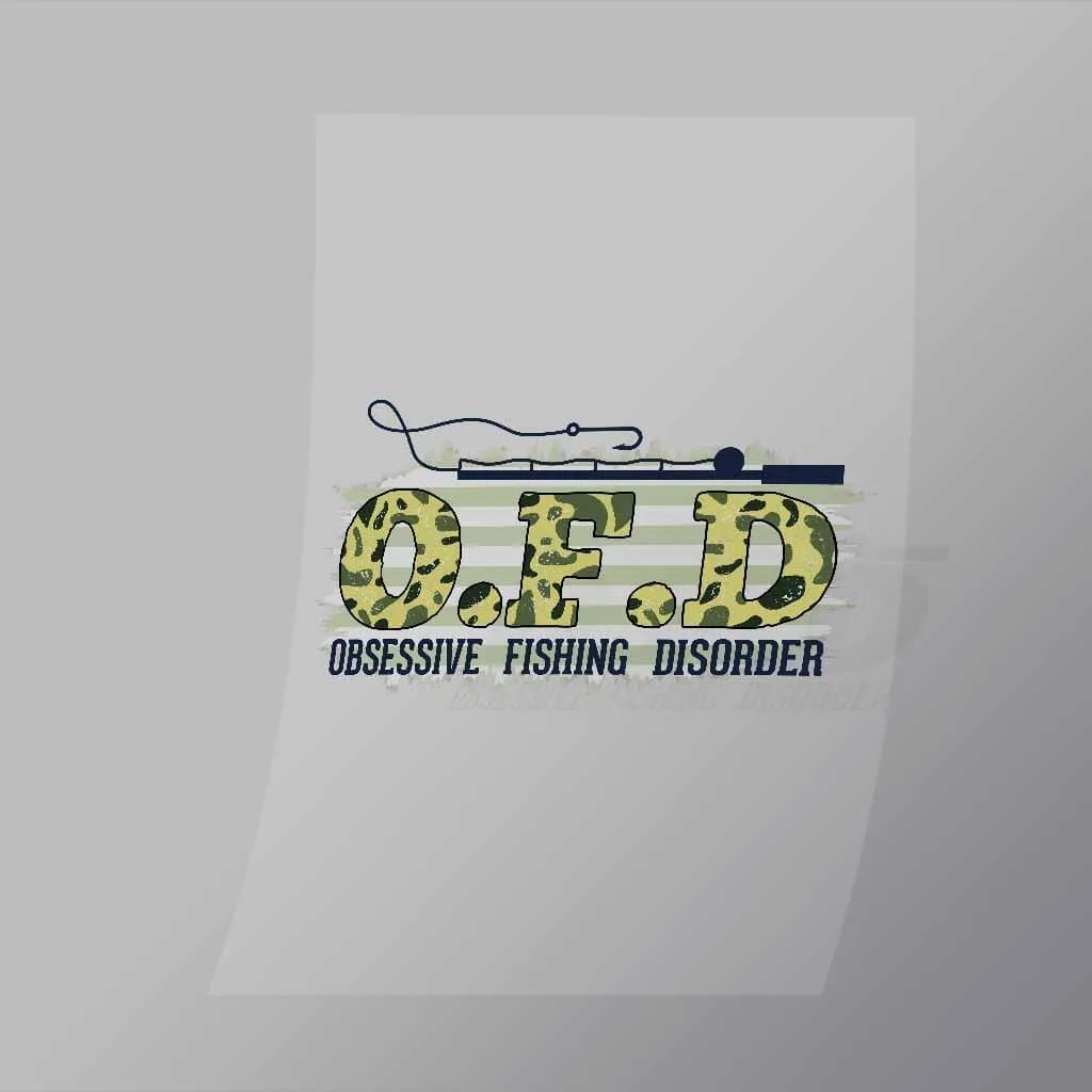 A great OFD Obsessive Fishing Disorder DTF (Direct to Film) Transfer available in multiple sizes. (Beased on width at artwork aspect ratio)