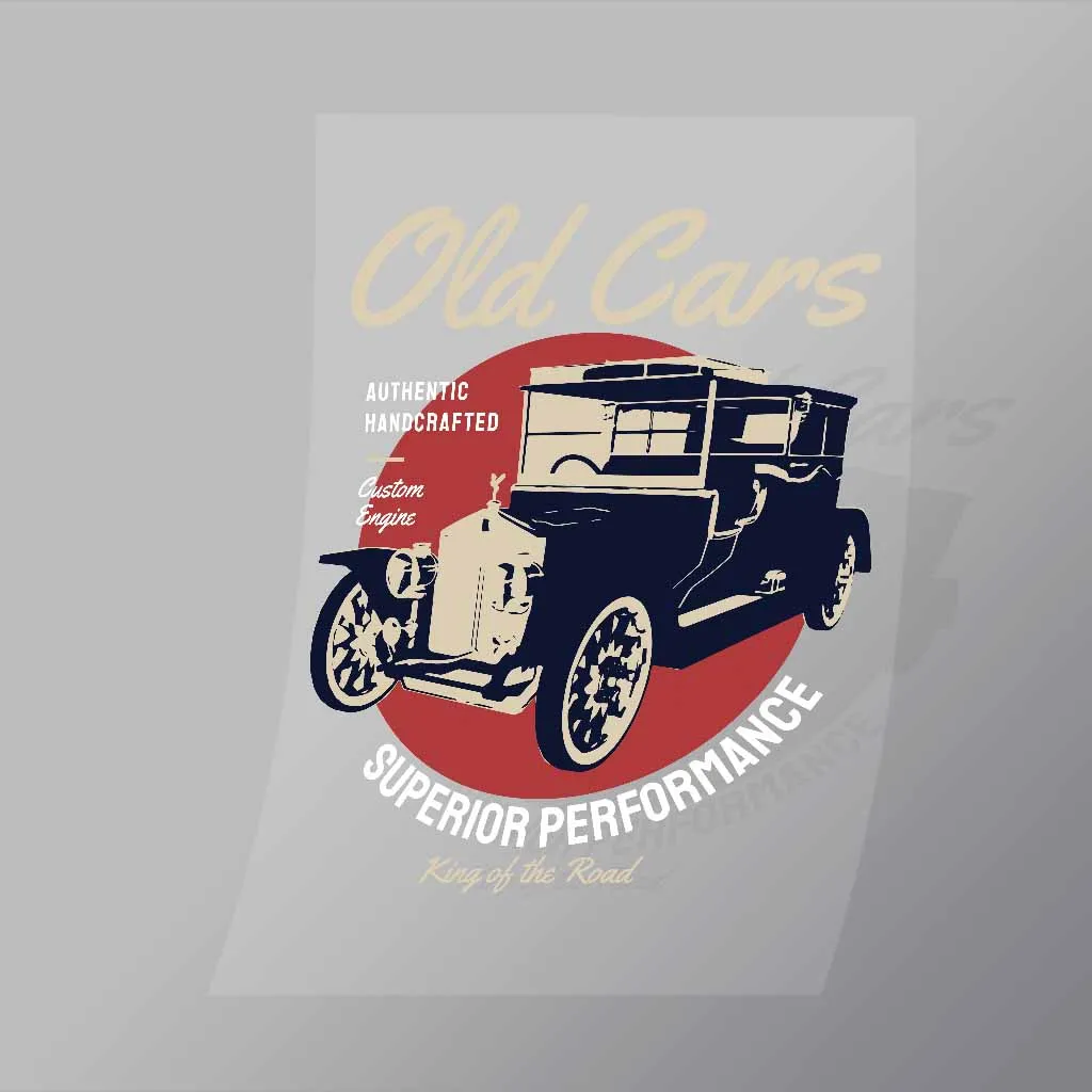 A great Old Cars Superior Performance DTF (Direct to Film) Transfer available in multiple sizes. (Beased on width at artwork aspect ratio)