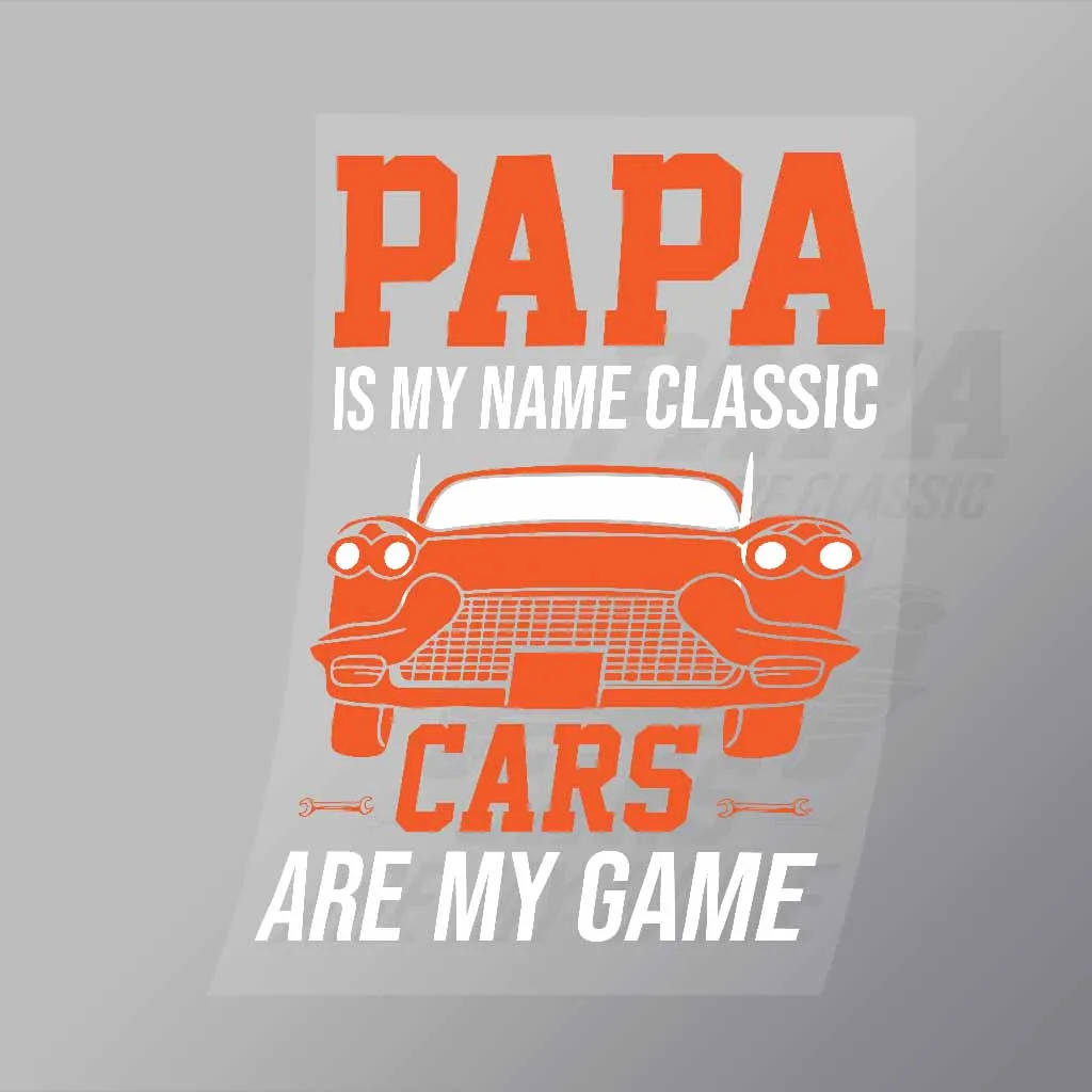 Papa Is My Name Classic Cars Are My Game DTF Apparel Transfer