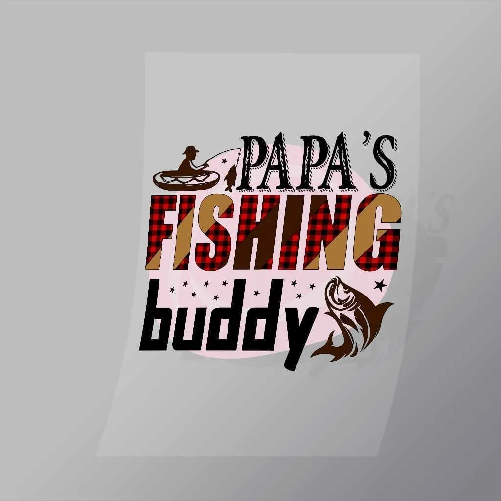A great Papas Fishing Buddy DTF (Direct to Film) Transfer available in multiple sizes. (Beased on width at artwork aspect ratio)