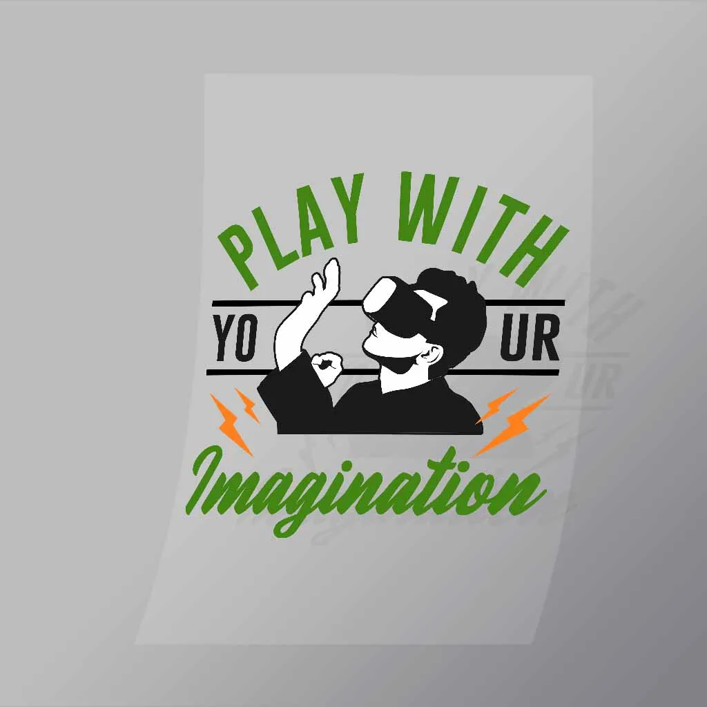 A great Play With Your Imagination DTF (Direct to Film) Transfer available in multiple sizes. (Beased on width at artwork aspect ratio)