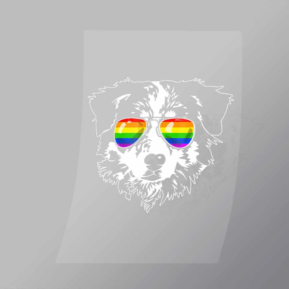 A great Pride Dog Glasses DTF (Direct to Film) Transfer available in multiple sizes. (Beased on width at artwork aspect ratio)