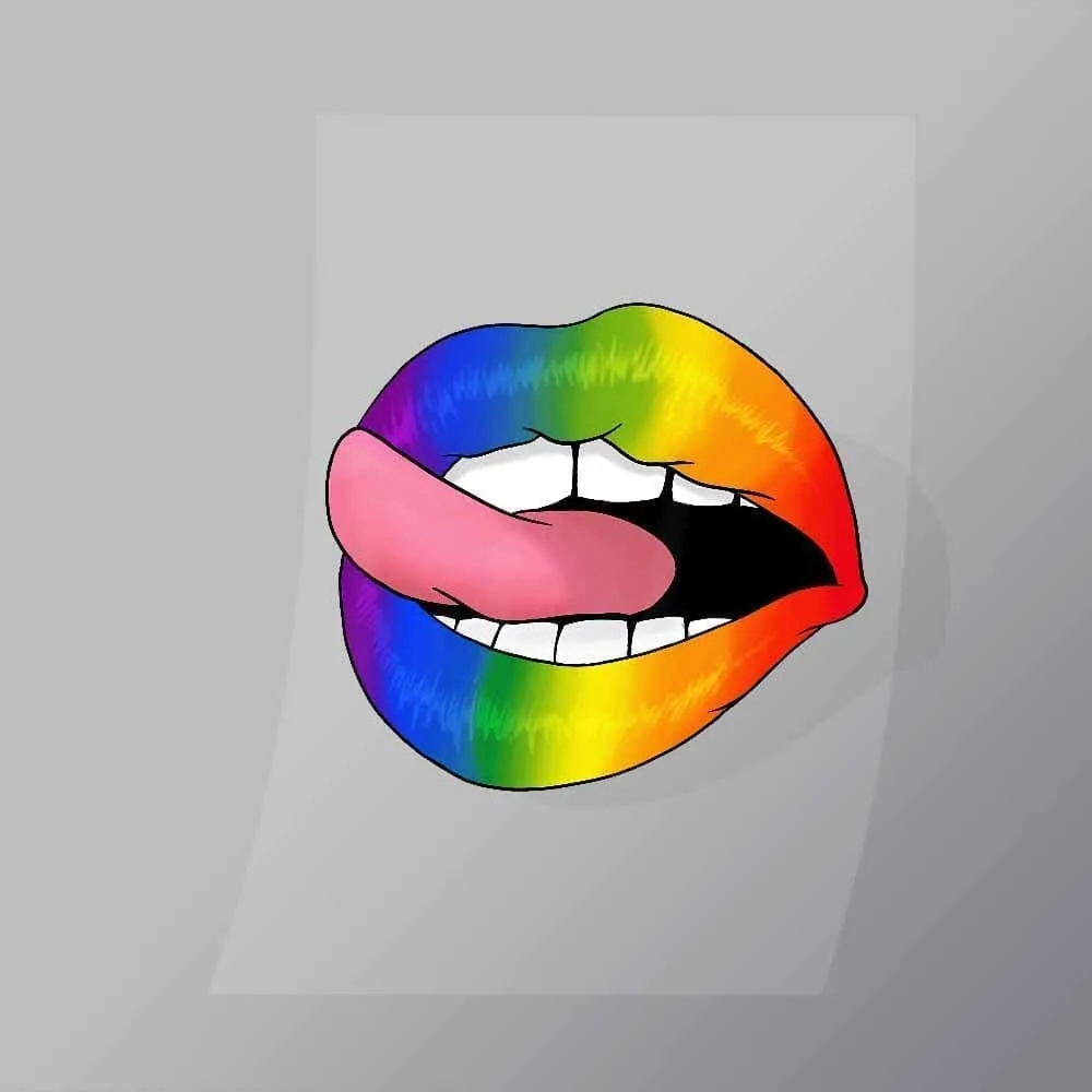 A great Pride Lip Lick DTF (Direct to Film) Transfer available in multiple sizes. (Beased on width at artwork aspect ratio)
