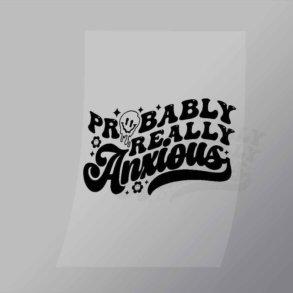 A great Probably Really Anxious DTF (Direct to Film) Transfer available in multiple sizes. (Beased on width at artwork aspect ratio)