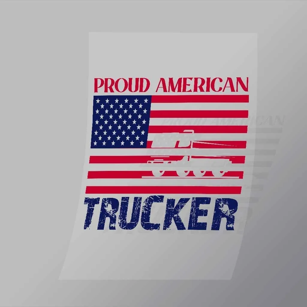 A great Proud American Trucker DTF (Direct to Film) Transfer available in multiple sizes. (Beased on width at artwork aspect ratio)