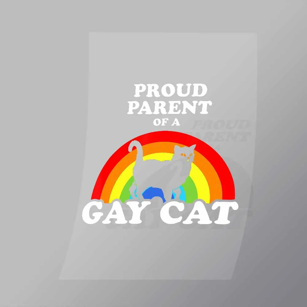 A great Proud Parent Of A Gay Cat DTF (Direct to Film) Transfer available in multiple sizes. (Beased on width at artwork aspect ratio)