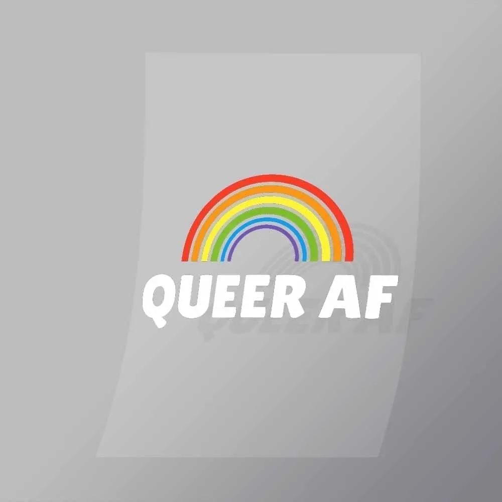 A great Queer Af DTF (Direct to Film) Transfer available in multiple sizes. (Beased on width at artwork aspect ratio)