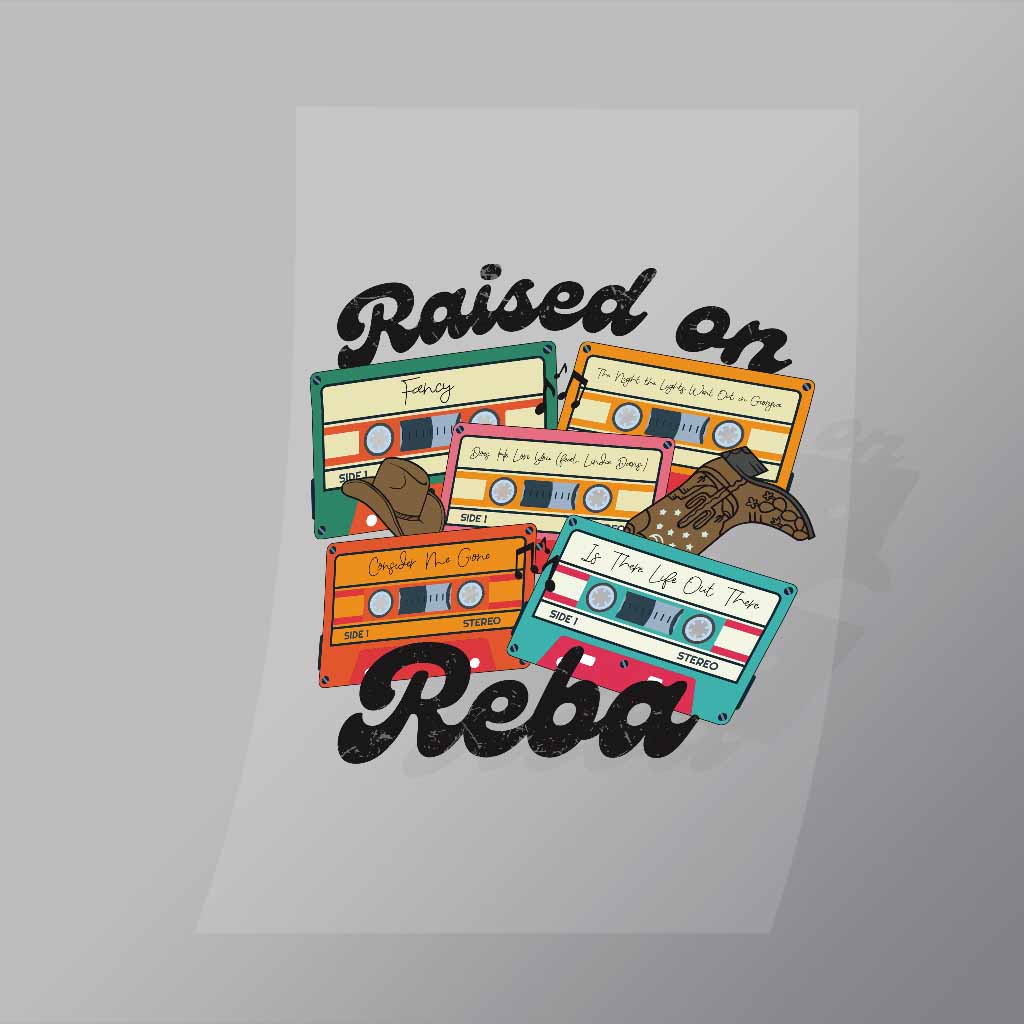 A great Raised on Reba DTF (Direct to Film) Transfer available in multiple sizes. (Beased on width at artwork aspect ratio)